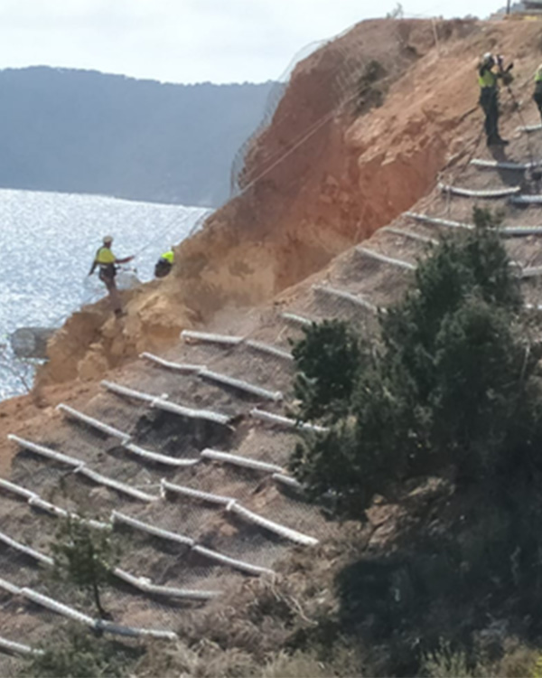 El sistema EROACTIVE© está diseñado para detener y prevenir la erosión en taludes de suelos o mixtos de suelo y roca.