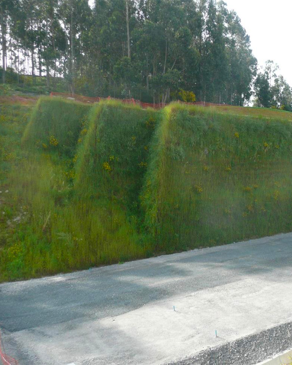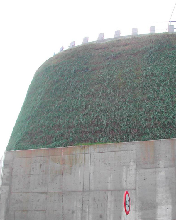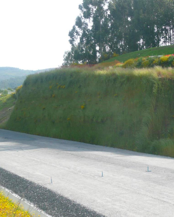 El resultado es un talud vegetado con alta verticalidad y excelente integración paisajística, que funciona como muro de contención, barrera acústica o protección contra desprendimientos.