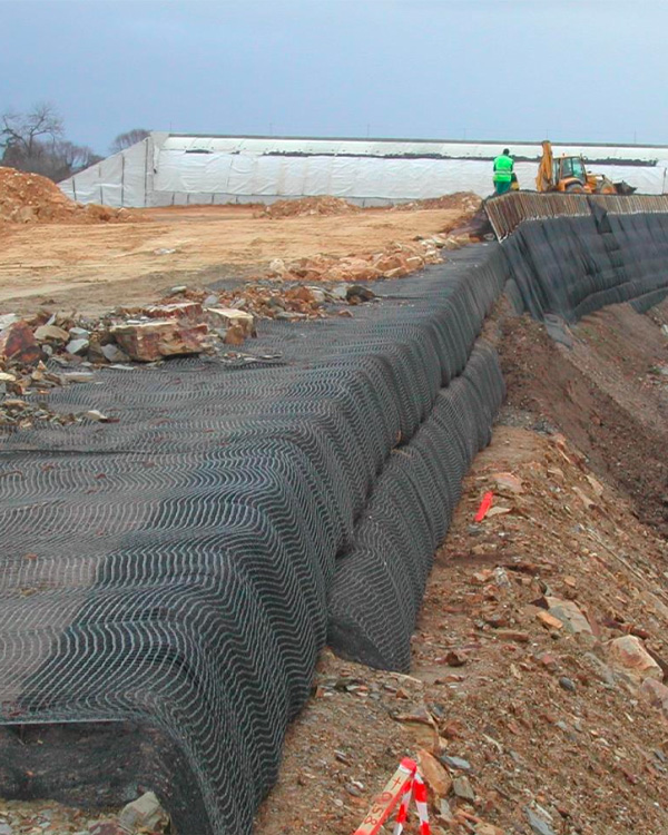 • Geomallas resistentes al creep, daño mecánico y agentes ambientales.
